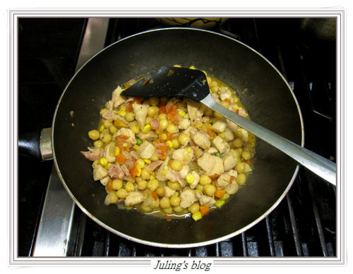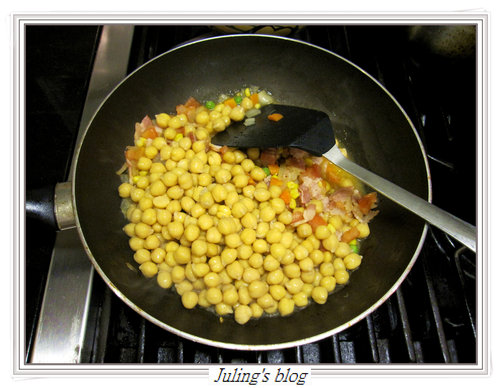 10. 加入鷹嘴豆及少許蒸鷹嘴豆的水.