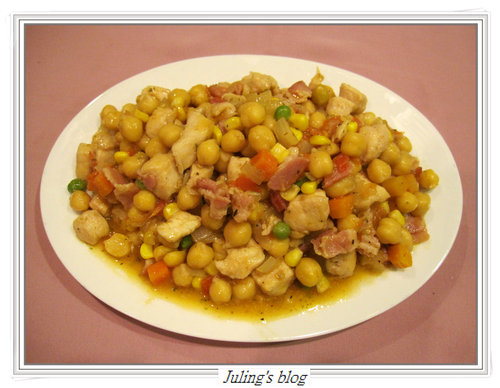 鷹嘴豆的口感有些像蓮子,拿來炒或加入沙拉裡都不錯,在一般美國超市都有賣,價格不貴,有罐頭也有乾燥的豆子,罐頭的雖然比較方便,但我還是喜歡買乾燥的,自己泡開再來蒸煮,蒸熟後,加些料炒,可以代替米飯當主食,也可以配飯.